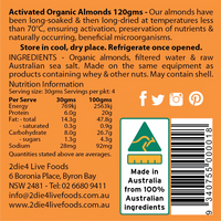 2die4 Live Foods' Activated Organic Almonds are probably the crunchiest, most delicious almonds you'll find. To activate our organic almonds, we long soak and slowly dehydrate them at low temperatures, releasing the bioavailability of their vitamins and minerals.