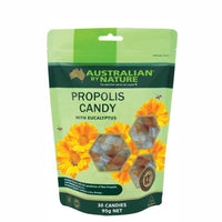 Australian By Nature Propolis Candy With Eucalyptus 30C contain the natural properties of Propolis and sweetness of Manuka Honey with a 12+ Methylglyoxal (MGO 400). With the additional refreshing qualities of peppermint oil, aniseed oil and menthol, these candies are a perfect treat to soothe a dry throat, clear the nose and freshen your breath.