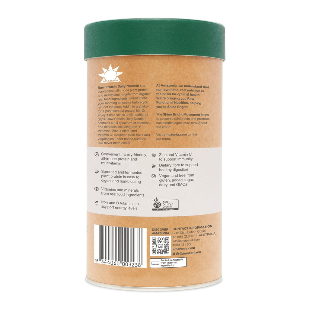 'Amazonia Raw Protein Daily Nourish Chocolate 500g delivers plant-based protein for muscle recovery and sustained energy.'