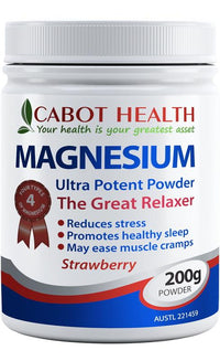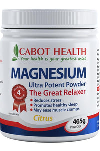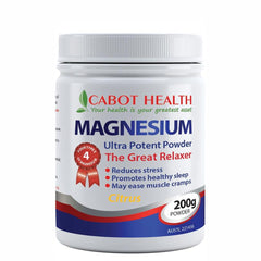 Cabot Health Magnesium Ultra Potent Powder Citrus 200G is exceptionally potent combination of four major forms of magnesium in powder form, plus taurine and zinc for maximum absorption and efficient utilisation.