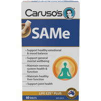Caruso's SAMe contains a blend of a special active ingredients including (S)-S-Adenosylmethionine (SAMe) and its co-factors Vitamins B6 and B12, Folic Acid and Choline. Caruso's SAMe has been formulated to support a healthy mood balance, emotional wellbeing, maintain general mental wellbeing and nervous system health.