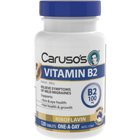 Caruso's Vitamin B2 is a one-a-day supplement designed to assist with the management of mild migraines, energy and metabolism and the maintenance of hair, skin and nails.