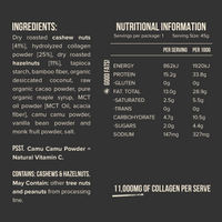 A biscuity, nut butter based snack to satisfy your sweet cravings. They're clean and natural, with no sugar alcohols or artificial thickeners and fillers. We don't use dates which means they're very low sugar, low carb, with plenty of protein from collagen (a tasteless, environmentally friendly protein source) and healthy fats from nuts to keep you full for longer. With ~16g of protein they're perfect pre or post workout or simply as a delicious treat to get you through to meal time! Keto and Paleo friendly.