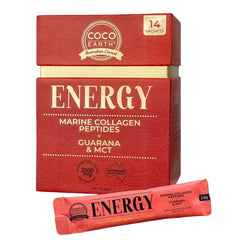 COCO EARTH Marine Collagen + Guarana & MCT single-serve sachets feature a generous 2500mg of Marine Collagen Peptides per serve plus Guarana & MCT.