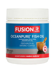 Fusion OceanPure Fish Oil contains VivoMega™ fish oil – a highly concentrated source of omega-3s (total 775mg omega-3 marine fatty acids per capsule) with guaranteed freshness, traceability and sustainability. The odourless capsules are flavoured with natural lemon to further reduce fishy burps, reflux and after-taste.