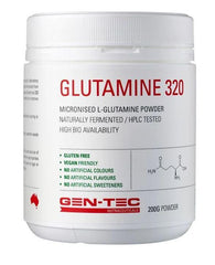 GEN-TEC NUTRACEUTICALS source, blend and package the highest quality laboratory tested (HPLC) Micronised L-GLUTAMINE powder. Our L-GLUTAMINE is naturally fermented from seed and glucose using a patented 18 stage extraction and filtration process. GLUTAMINE 320 is virtually impurity free and micronised to 320 mesh size making it finer in texture to improve mixing and absorption.