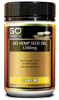 GO HEMP SEED OIL 1,100mg is an extra virgin, cold pressed oil, extracted from Hemp Seeds. Hemp Seed Oil provides one of natures most balanced source of Omegas 3, 6 and 9 fatty acids, to support everyday health and vitality. GO Hemp Seed Oil 1,100mg provides a high quality balance of essential fatty acids, supplied in an easy to take capsule.
