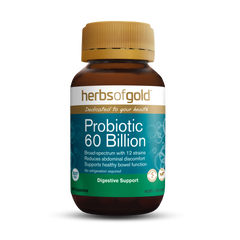 'Herbs Of Gold Probiotic 60 Billion supports gut health and digestion with beneficial bacteria. Ideal for maintaining a healthy digestive system.'