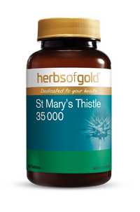 Herbs Of Gold St Mary's Thistle 35,000 60T is a high strength formula providing a standardised extract of St Mary's thistle (also known as Milk thistle) has traditionally been used to support liver and gallbladder health and to assist bile flow.