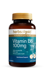 Herbs of Gold Vitamin B6 100mg contains a blend of pyridoxine and pyridoxial 5-phosphate monohydrate (activated B6), in a convenient one-a-day tablet, to help maintain vitamin B6 levels in the body.