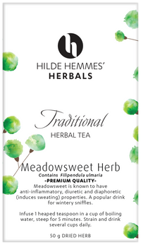 Meadowsweet herb which is part of our herbal tea range, has no added: Preservatives, colours, flavours, gluten, lactose, nuts, caffeine and sugars