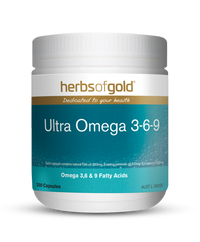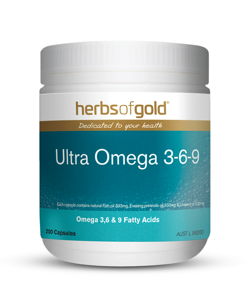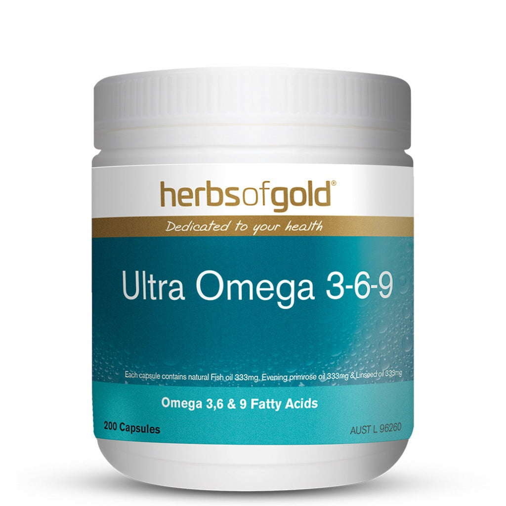 Herbs Of Gold Ultra Omega 3-6-9 200C combines Omega 3, 6 and 9 fatty acids from a combination of Linseed (Flaxseed), Evening primrose and Fish oils.