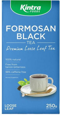 Kintra Foods Loose Leaf Formosan Black Tea is 100% natural and incredibly rich in antioxidants, offering an all-natural boost to your immune system. This loose leaf tea is 98% caffeine free and doesn't have any tannin bitterness, so you can enjoy the amazing taste without the need to add milk or sugar.