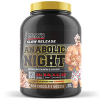MAX’S Anabolic Night is Australia best-selling night protein. It provides up to 8 hours of continuous protein release to keep you recovering and growing all night. Up to 60% of new muscle growth occurs while you sleep – if you give your body the right nutrients. Don’t waste your hard hours in the gym with poor night time nutrition - Use Anabolic Night and wake up bigger!