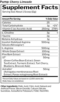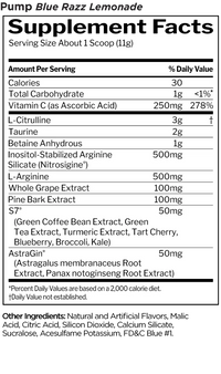 Pump pre-workout features 16 active ingredients, including Nitrosigine®, S7™, and AstraGin®, to help stimulate nitric oxide production within the body and support vascularity.^