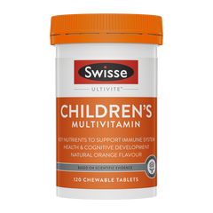 Swisse Ultivite Children’s Multivitamin supports nutritional levels in the body, immune system health, and cognitive development. It comes in a great-tasting, chewable tablet, ideal for fussy eaters