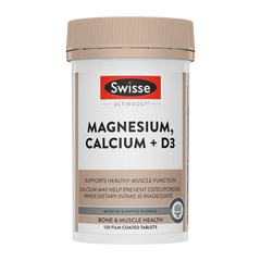 Swisse Ultiboost Magnesium, Calcium + D3, maintains bone health, supports healthy muscle function and relieves muscle cramps when dietary magnesium intake is inadequate.