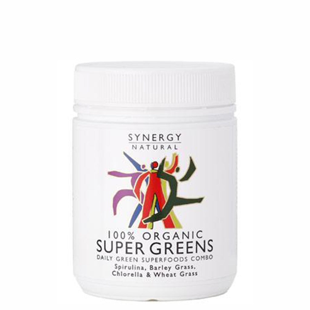 Synergy Super Greens is a synergistic blend of Nature’s most nutrient dense green superfoods, Spirulina, Chlorella, Barley Grass and Wheat Grass. When we ask our customers what they like most about taking Super Greens the most common response is “I have more energy now"!.