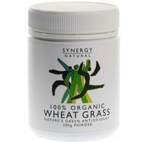 Wheat Grass provides all the vitamins, minerals, trace elements, enzymes, fibre and special nutrients like chlorophyll essential in our diet. These nutrients are integrated by Nature into a natural balance and potency un-matched by synthetic formulations. It is the most potent, convenient, and affordable way to help achieve your 5 + daily servings of vegetables.Synergy Wheat Grass is 100% pure, whole leaf Wheat Grass powder (Triticum aestivum). It is grown outdoors without pesticides, herbicides or artificial fertilizers in an environmentally clean area of Australia and contains no additives, fillers, colours or preservatives.