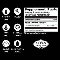 Pearl powder extract helps boost the production of collagen, and promotes fast recovery and wound healing for skin tone with sun damage. Its effectiveness for restoring youthful skin and extending life span makes Pearl extract one of the best longevity supplements and skin care ingredients ever.