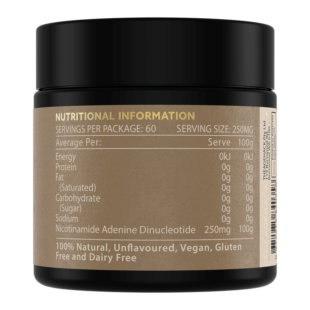 Revitalize your body at the cellular level with The Age Hack's NAD+ Powder, a groundbreaking supplement designed to elevate your energy, resilience, and overall well-being. This potent powder encapsulates the power of NAD+ (Nicotinamide Adenine Dinucleotide), a coenzyme integral to cellular function, ensuring you embrace each day with renewed vigour.