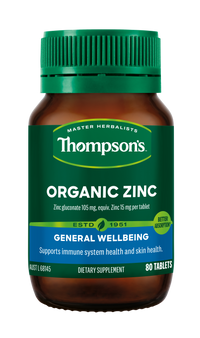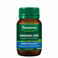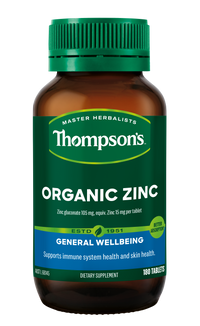 'Thompsons Organic Zinc supports immune function, skin health, and overall wellness. Great for those looking to boost immunity.'
