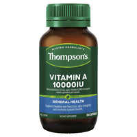 Thompson's Vitamin A 10000IU is a vitamin supplement formula, that provides a high potency dose of antioxidant and free radical scavenger vitamin A, which aids in supporting healthy function of the immune system as well as supporting healthy eyesight and vision and assisting in the maintenance of the health and integrity of the skin.