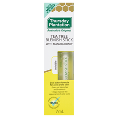 Thursday Plantation Tea Tree Blemish Stick with Manuka Honey features a dual-action formula that combines the power of 100% pure, Australian-grown Tea Tree oil with Manuka Honey.