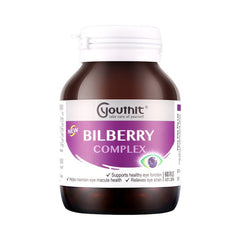 YouthIt®BILBERRY COMPLEX provides a complex eye health formulacombining natural herb extract Bilberry,Grape seed & Eyebright and essentialnutrients Lutein, Zeaxanthin & VitaminC to support healthy eye function, helpmaintain eye macula health and relieveeye strain. it also helps reduce freeradical damage to body cells as well assupport general health and wellbeing.